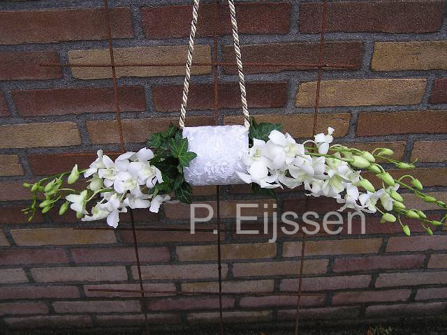 Tasvormig bruidsboeket dat gedragen kan worden.