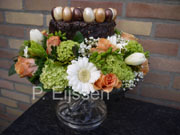 bloemen: roosjes, freesia's, ranonkel, germini's, anjer